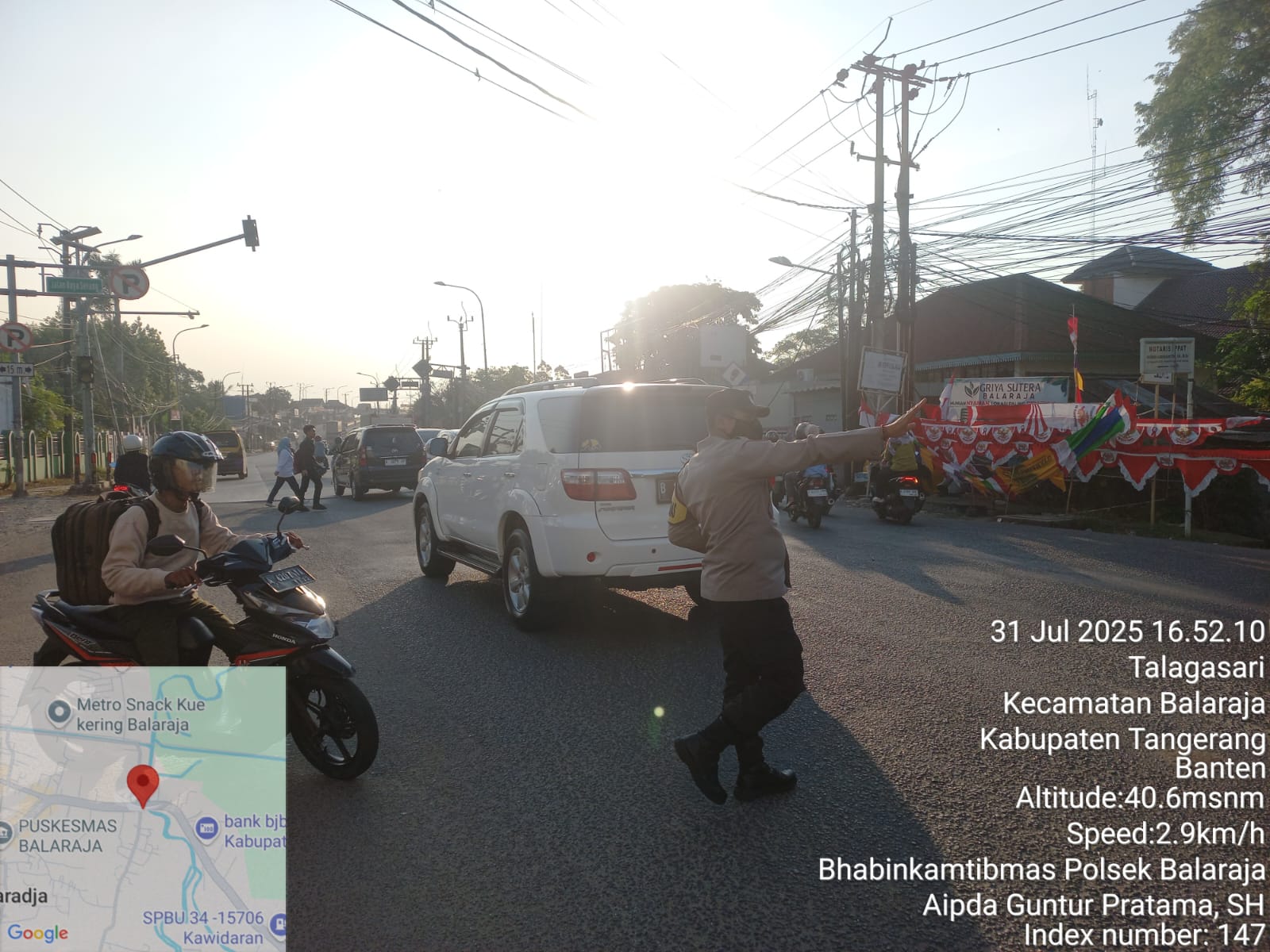 TANGERANG | Dalam rangka menciptakan Keamanan, Keselamatan, Ketertiban dan Kelancaran Lalulintas (Kamseltibcar Lantas), Bhabinkamtibmas Aipda Guntur P. dari Polsek Balaraja melaksanakan kegiatan Gatur Lalin sore hari di Jln Raya Serang Depan Kecamatan Balaraja Wilayah Hukum Polsek Balaraja Polresta Tangerang. Kamis (31/07/2025)