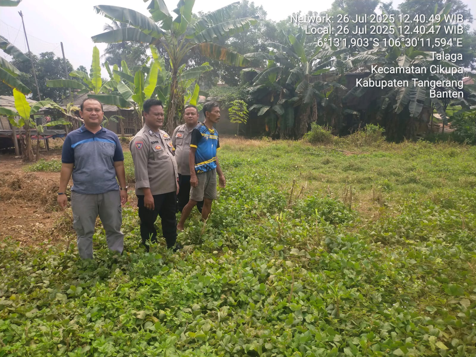 KABUPATEN TANGERANG | Dalam rangka mendukung program ketahanan pangan nasional, jajaran Polsek Cikupa Polresta Tangerang Polda Banten melaksanakan kegiatan pengecekan lahan seluas 5000 meter persegi yang berlokasi di Kampung Talaga, RT 04/03, Desa Talaga, Kecamatan Cikupa, Kabupaten Tangerang, pada Sabtu (26/7/2025) pukul 12.00 WIB.