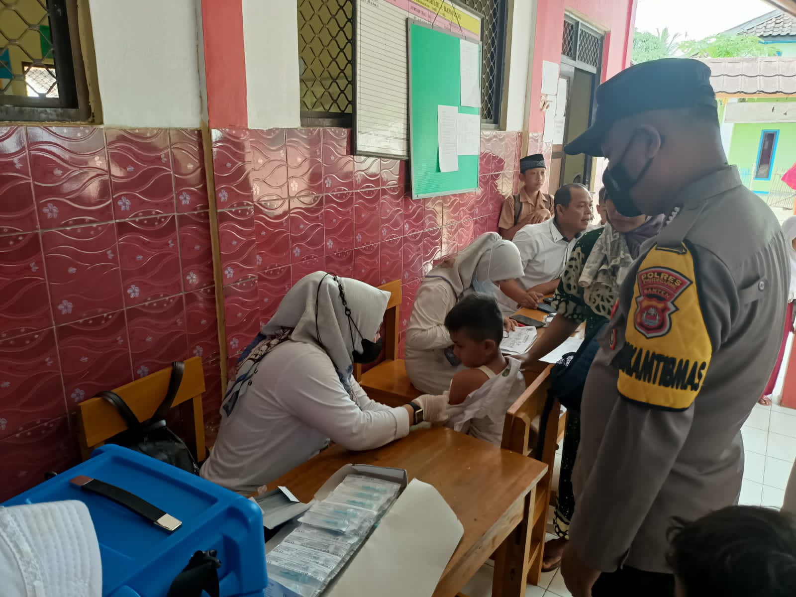 Kegiatan tersebut dipimpin oleh Kapolsek Cimanggu Iptu Darwin Khairul Syafari, S.Si yang dilaksanakan di SDN Rancapinang 2 Kp. Cegog Desa Rancapinang Kec. Cimanggu Kab. Pandeglang bekerjasama dengan Puskesmas Cimanggu.