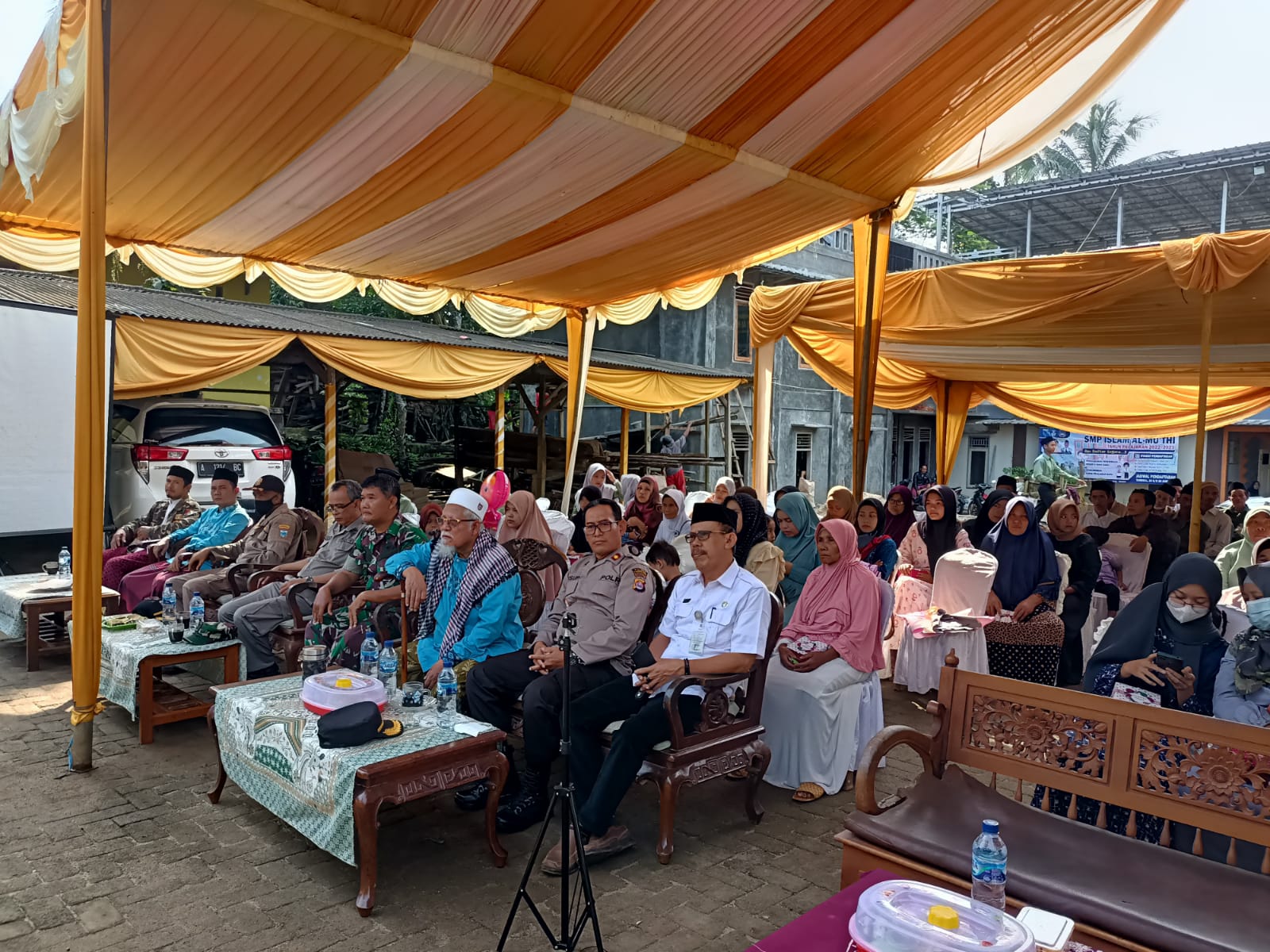Kegiatan tersebut juga dihadiri oleh Muspika Kec. Menes, Pimpinan Ponpes, para Ustadz/Ustadzah, orang tua santri dan para Santri Ponpes Al Mu’thi Kananga Menes.
