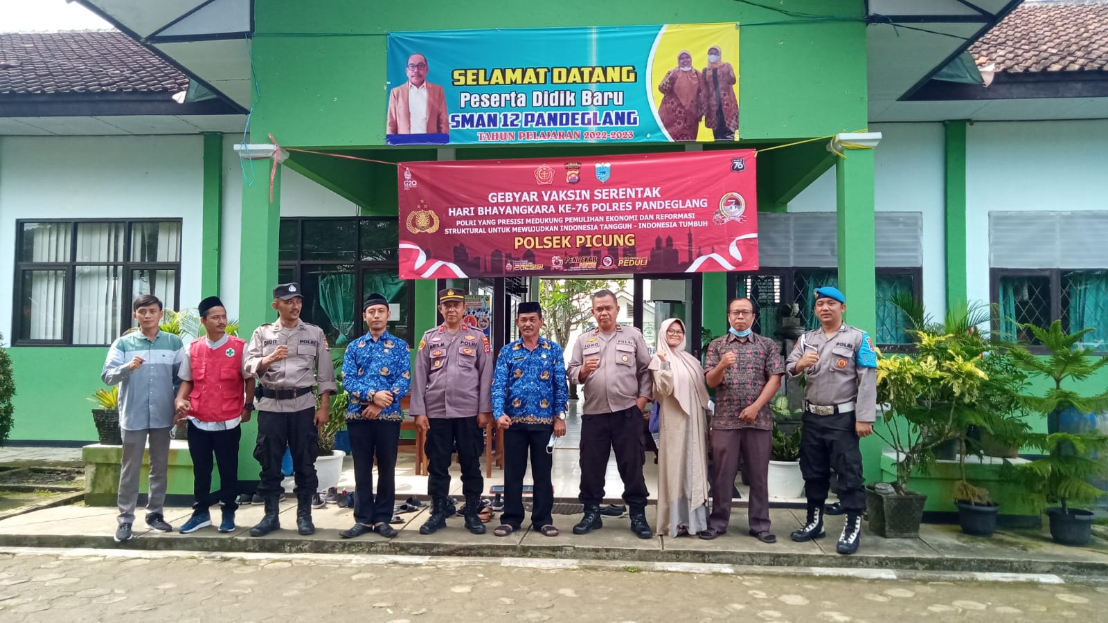 Baraknews PICUNG, PANDEGLANG, Polsek Picung Polres Pandeglang bersama Tim Vaksinasi Puskesmas Picung Melaksanakan Gebyar vaksinasi Covid-19 Dosis Pertama Dan Kedua yang dilaksanakan di Sekolah Sma Negeri 12 Picung, Jumat (17 Juni 2022) pagi.