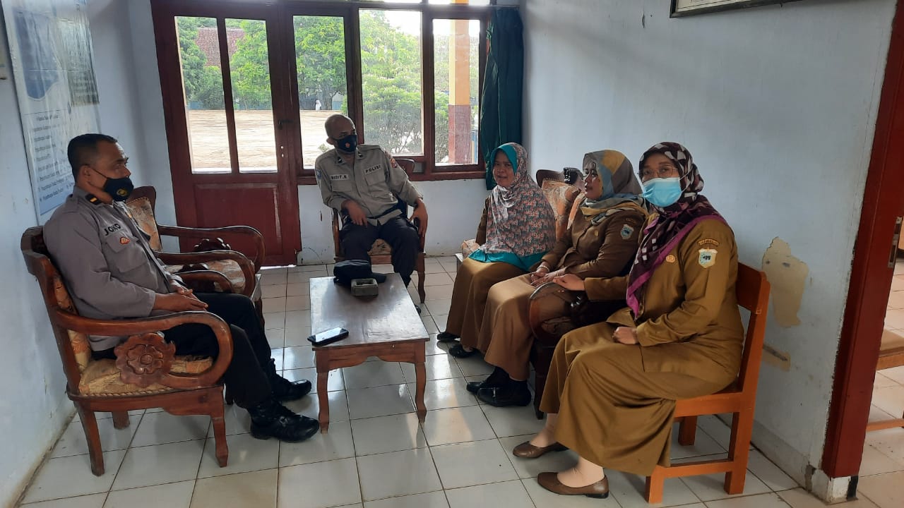Baraknews PICUNG, PANDEGLANG-, Kanit Sabhara Polsek Picung Ipda Joko beserta Ps Kanit Binmas Polsek Picung Aipda Didit Kusyunianto menyambangi SMP N 1 PICUNG yang beralamat di Desa Cililitan Kecamatan Picung, Senin (24 Januari 2022)