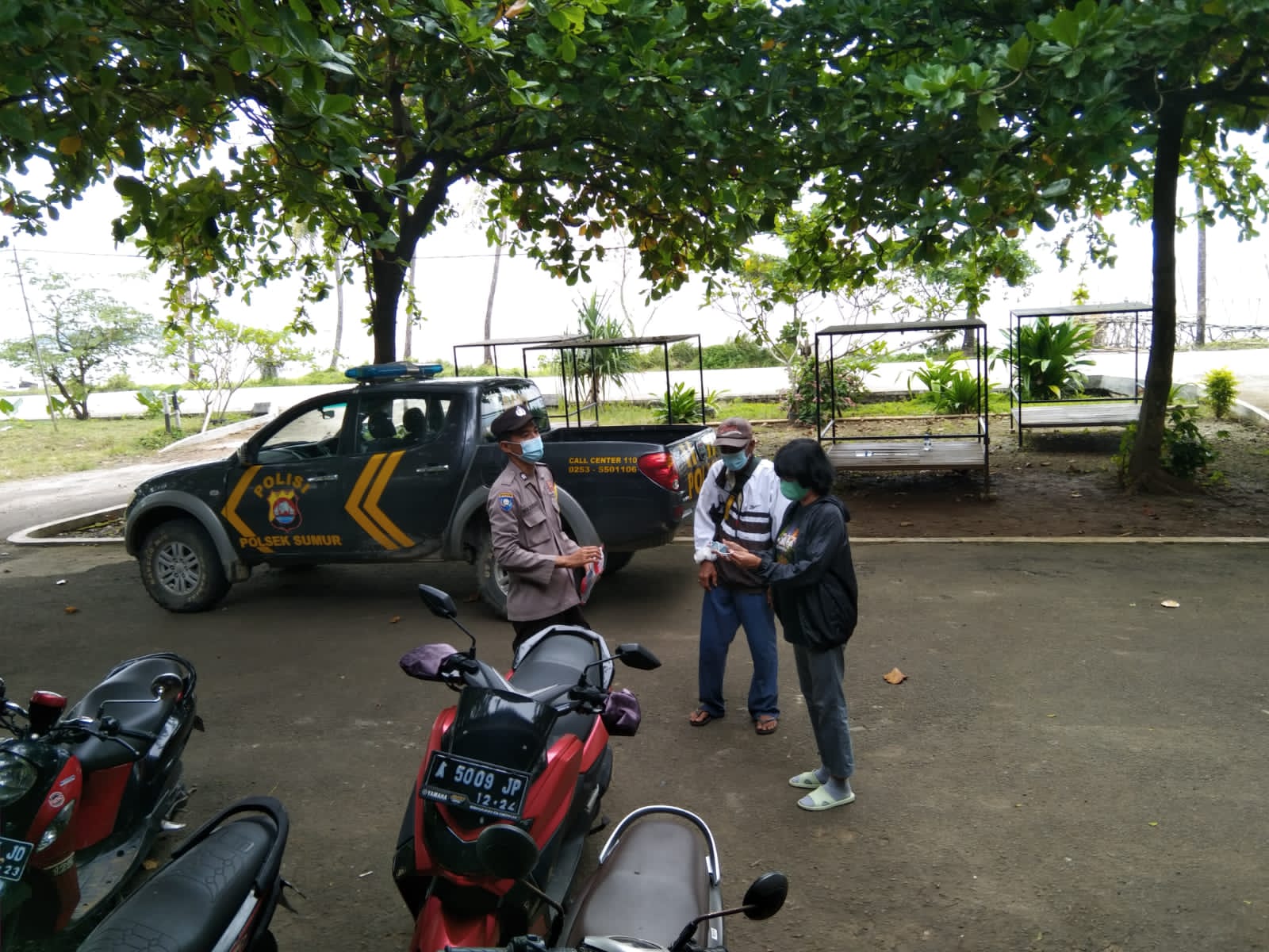 Membagikan masker gratis di tempat-tempat wisata Pantai kepada warga masyarakat di wilayah Hukum polsek sumur, dan memberikan himbauan edukasi sebagai upaya pencegahan penyebaran virus Covid 19, serta menyampaikan pesan Kamtibmas