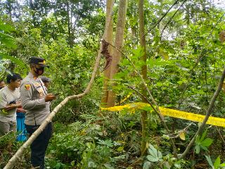 Baraknews Polda Banten-Kapolsek Walantaka Iptu Ferry bersama personelnya melakukan pengecekan penemuan mayat yang sudah menjadi kerangka di Kebun tepatnya di Lingkungan Pesanggrahan, Kelurahan Walantaka, Kecamatan Walantaka, Kota Serang pada Rabu (19/10).