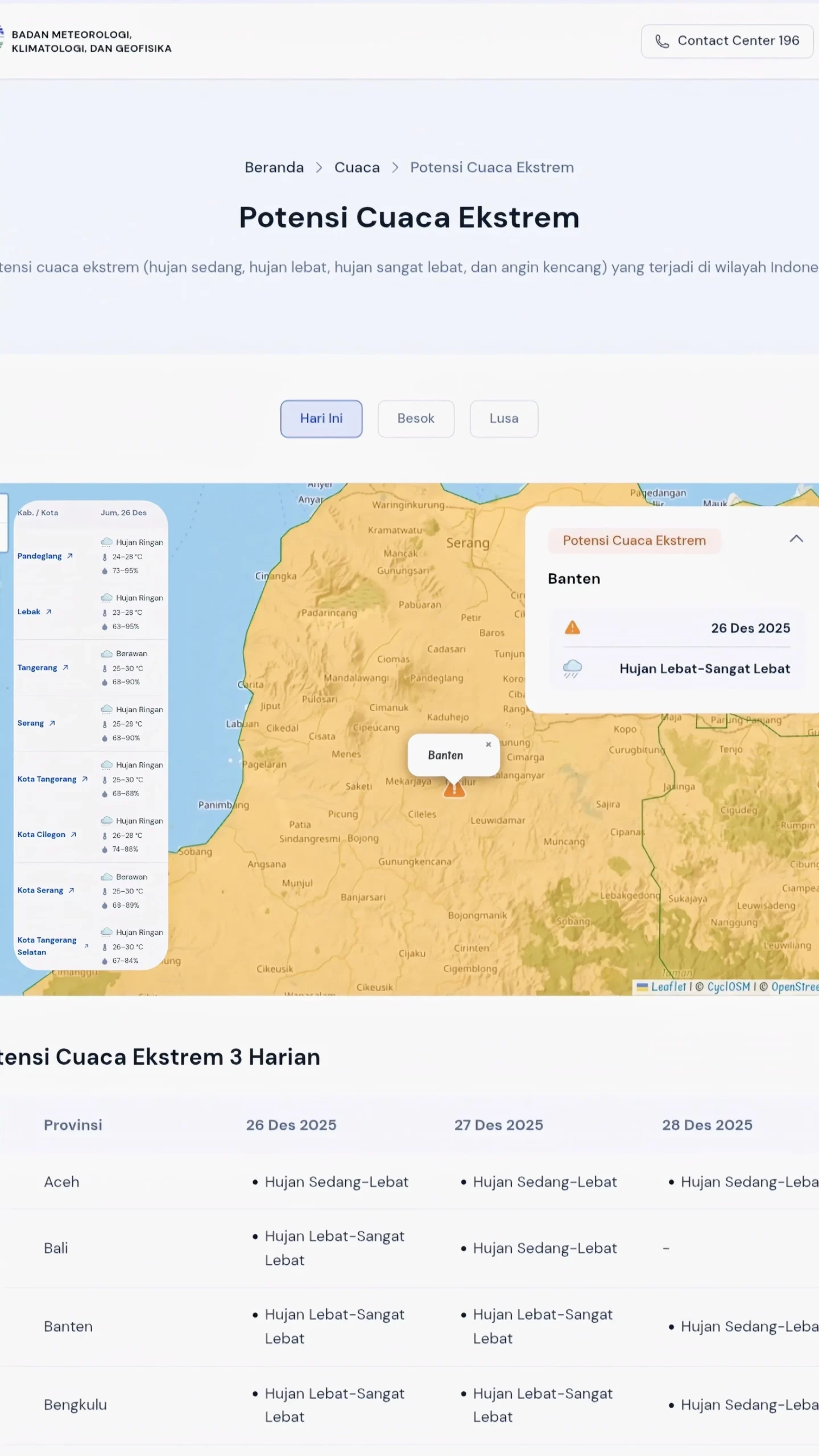 Serang – Polda Banten kembali mengimbau masyarakat untuk meningkatkan kewaspadaan terhadap potensi cuaca tidak menentu berdasarkan pembaruan informasi dari Badan Meteorologi, Klimatologi, dan Geofisika (BMKG) Banten pada Jumat (26/12).