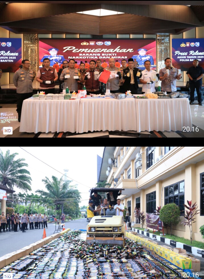 Polda Banten juga memusnahkan barang-bukti antara lain sabu-sabu seberat 1.249 gram, ganja seberat 12.197 gram, serta berbagai jenis minuman keras sebanyak 8.617 botol. Pemusnahan ini dilakukan sebagai bentuk transparansi dalam pengelolaan barang bukti sekaligus sebagai upaya tegas Polda Banten dalam memberantas peredaran narkoba dan minuman keras ilegal di wilayah (Bidhumas). No ratings yet.