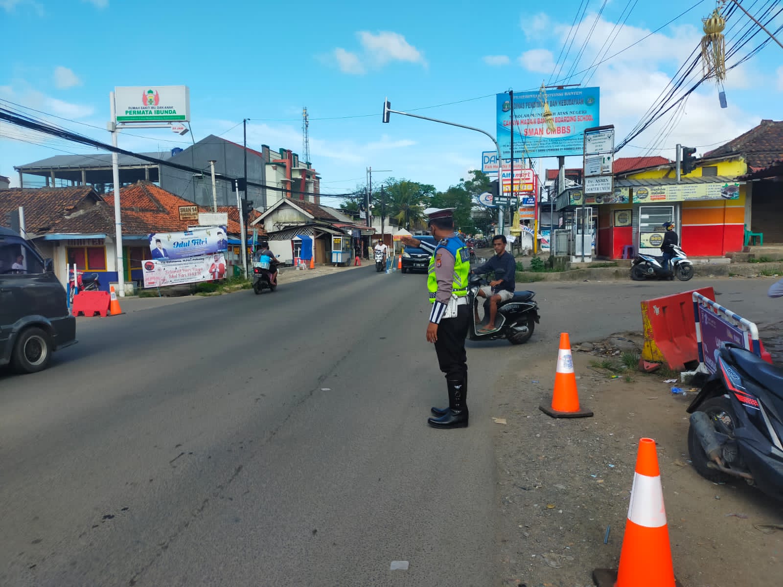 Kegiatan pengamanan dan pengaturan lalulintas oleh BRIGADIR SAIPUDIN, Banit lantas Polsek Pandeglang pada hari Minggu, tanggal 08 Mei 2022, di perempatan lampu merah Maja kec majasari Wilkum polsek Pandeglang.