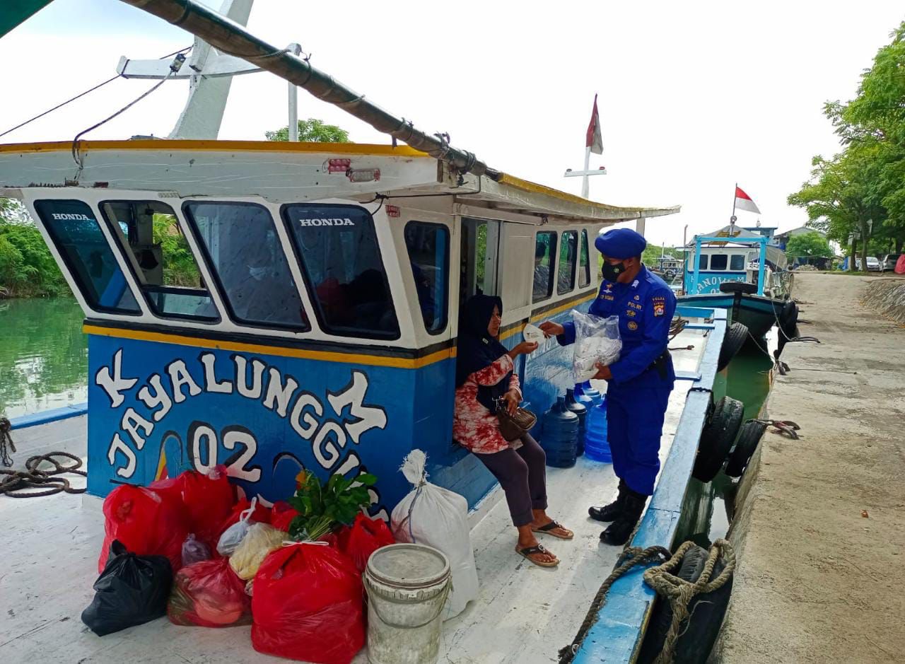 Putus Tali Rantai Covid-19, Personel Ditpolairud Rutin Bagikan Masker Kepada Masyarakar Sekitaran Pelabuhan Grenyang