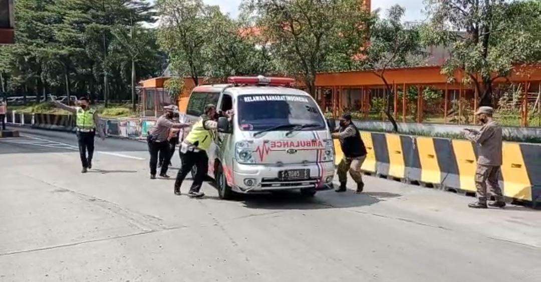Masih kata Fikry menambahkan, “Kemudian petugas Pospam berupaya mengecek kerusakan dan setelah diketahui kerusakan tersebut berasal dari aki kendaraan, selanjutnya petugas Pospam mengambil alih dengan mendorong bersama-sama dan berhasil. Kemudian ambulans bisa melanjutkan perjalanan,” tambahnya.
