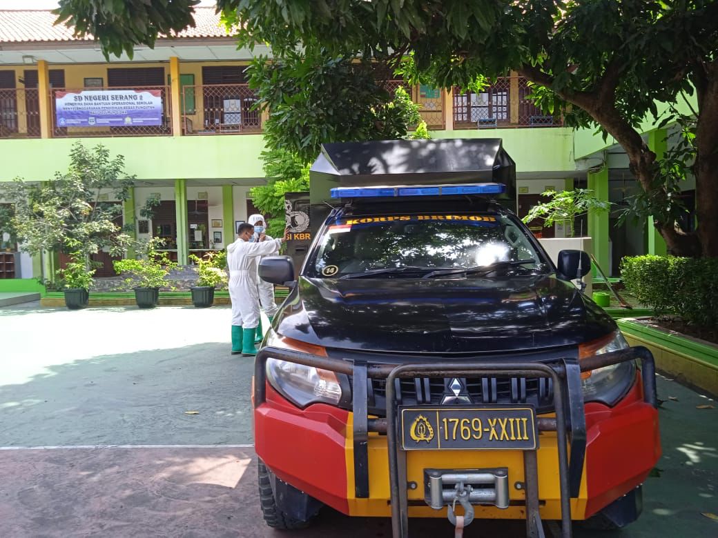 Baraknews|Kota Serang – Dalam menghentikan penyebaran Covid-19 yang semakin meningkat, Satuan Brimob Polda Banten melaksanakan penyemprotan cairan disinfektan di SDN 02 Kota Serang pada Kamis (27/01).