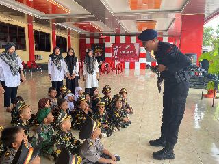 Baraknews Serang – Kunjungan Siswa siswi Paud Insan Madani Kelurahan Pancur Taktakan, Kota Serang ke Satuan Brimob (Satbrimob) Polda Banten dalam rangka kunjungan edukasi atau belajar tentang tugas pokok, fungsi Brimob dan peralatan yang dimiliki Satbrimob Polda Banten pada Rabu (09/11).