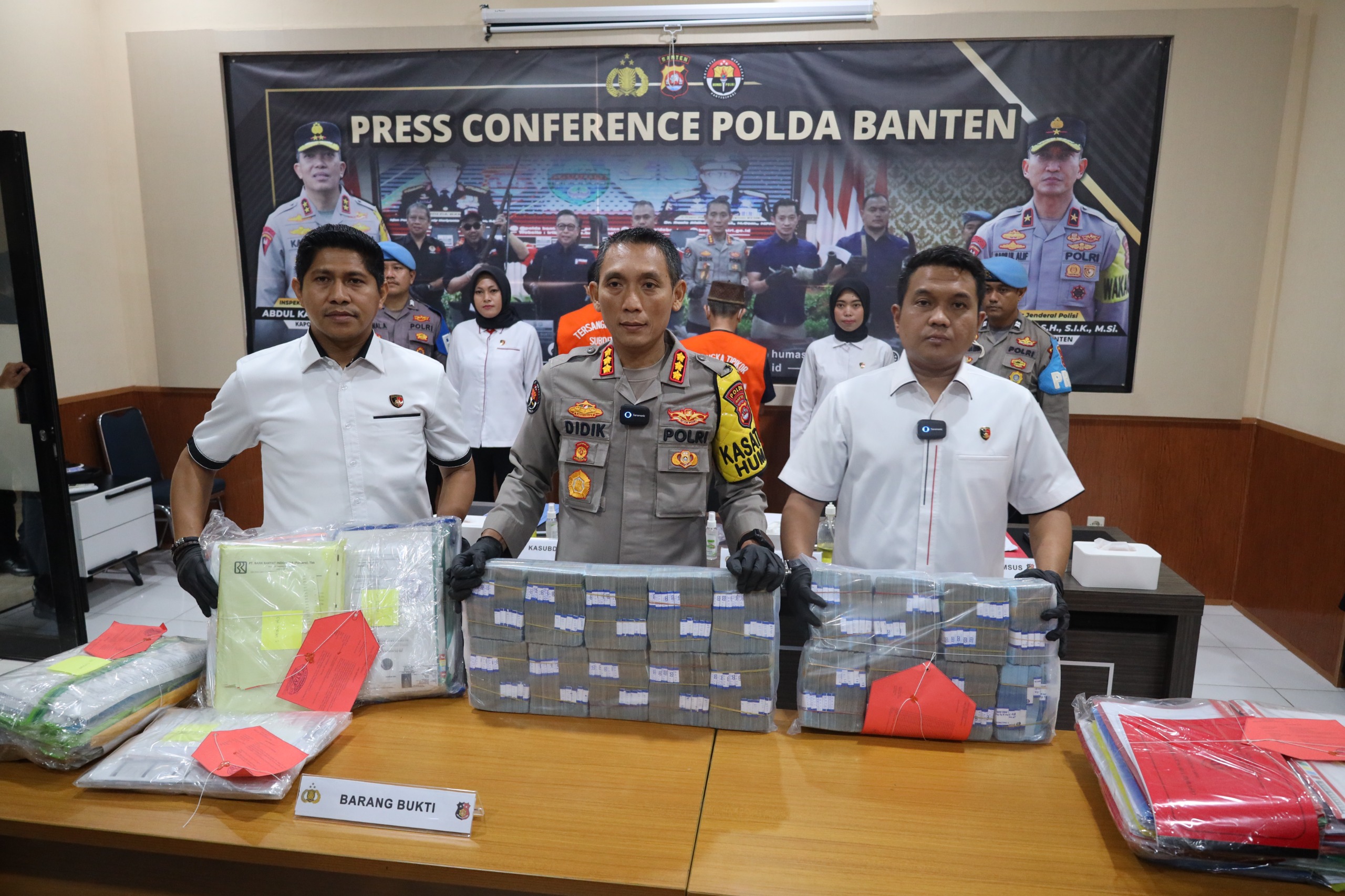 Selanjutnya Wiwin menyebutkan barang bukti yang berhasil diamankan oleh Ditreskrimsus Polda Banten. “Barang bukti yang berhasil di amankan yaitu berupa Berkas, dan uang senilai Rp 882.503.750,” kata Wiwin.