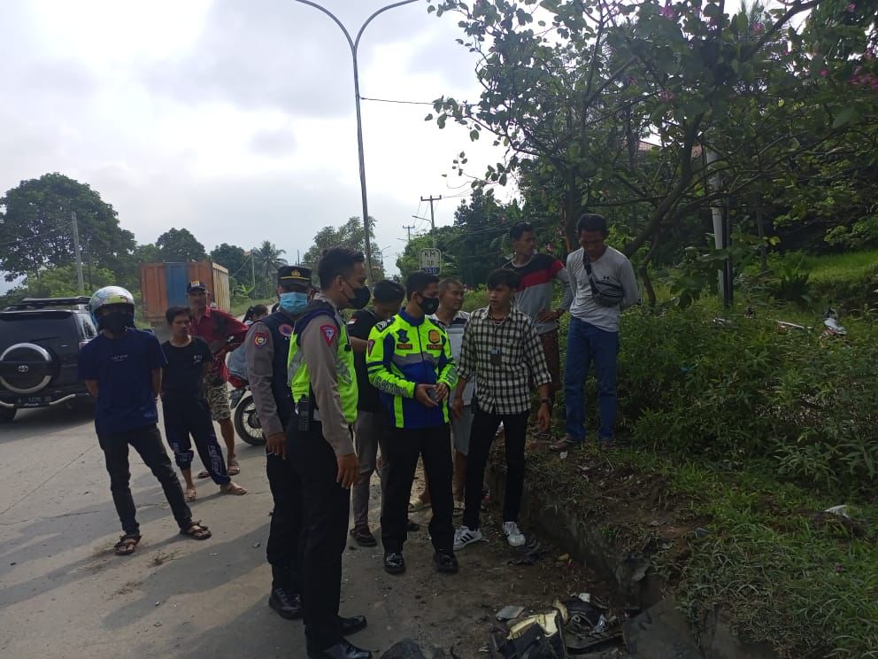 Baraknews Polda banten- Satlantas Polres Cilegon langsung bergerak cepat evakuasi kecelakaan lalu lintas tabrak belakang pada Rabu (17/08) sekitar pukul 14.00 Wib di Jalan Raya Cilegon – Citangkil tepatnya di tanjakan Lebak Denok Kelurahan Lebak Denok Kecamatan Citangkil Kota Cilegon yang dialami pengendara motor Yamaha Vino yang dikendarai sepasang suami istri yaitu AI (35) laki – laki dan RI (33) perempuan.