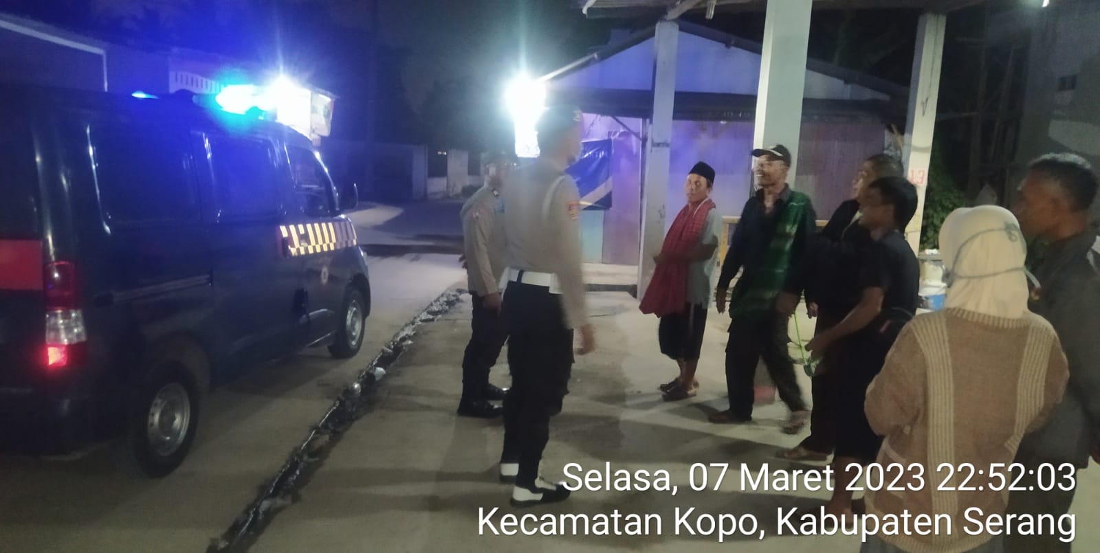 Baraknews Polres SERANG | Berbagai upaya yang dilakukan dalam menciptakan situasi kamtibmas yang aman dan kondusif di tengah-tengah masyarakat, kegiatan rutin yang ditingkatkan (KRYD) di wilayah Hukum Polsek Kopo Polres Serang dengan melakukan patroli dialogis malam hari, Selasa (07/03/2023).