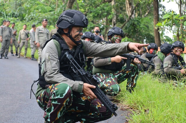 Baraknews Polda Banten– Kapolda Banten mengikuti latihan Jungle Warfare bersama para Pejabat Utama Polda Banten dan anggota Satbrimob Polda Banten di Pantai Urug pada Jum’at (23/09).