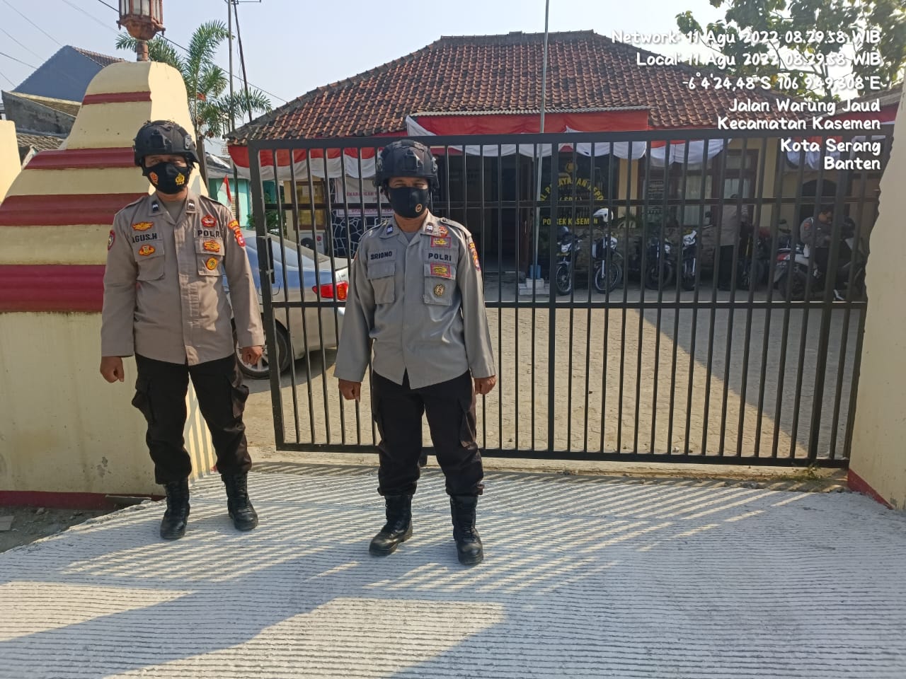 Baraknews Polsek Kasemen Polresta Serkot. – Personil Polsek Kasemen Polresta Serkot Polda Banten dipimpin Langsung Perwira Pengawas (Pawas) Aipda Agus Hariyanto Kanit Binmas Polsek Kasemen, Bersama Seluruh Piket Pungsi Melaksanakan Sistem Pengamanan Markas Komando (Sispam Mako),”Kamis (11/08/2022)