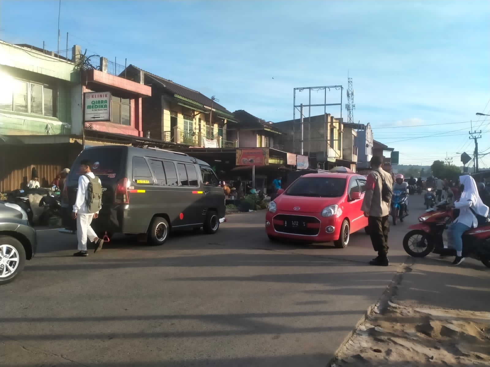 Baraknews.com Pandeglang– personil polsek cimanuk AIPTU DODIK.S melaksanakan pengaturan pagi di pasar batu bantar untuk mengurangi kemacetan dan memberikan kenyamanan kepada pengguna jalan.Selasa, 25/01/2022