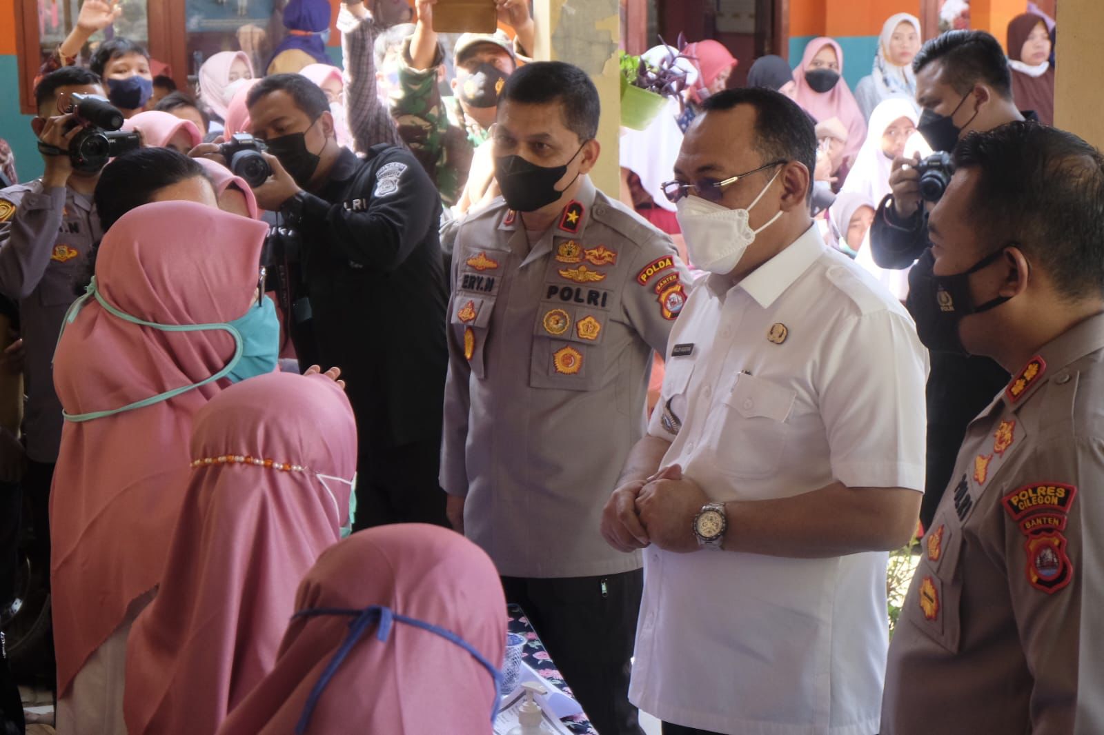 Wakapolda Banten merespons positif terhadap pelaksanaan vaksinasi Covid-19 serentak di SDN Bojong Baru Cilegon dan mendukung akselerasi vaksinasi Covid-19. “Terimakasih atas pelaksanaan vaksinasi Covid-19 serentak di Pandeglang saat ini, diadakan serentak diseluruh Polda untuk akselerasi vaksinasi bagi masyarakat,” ujar Wakapolda