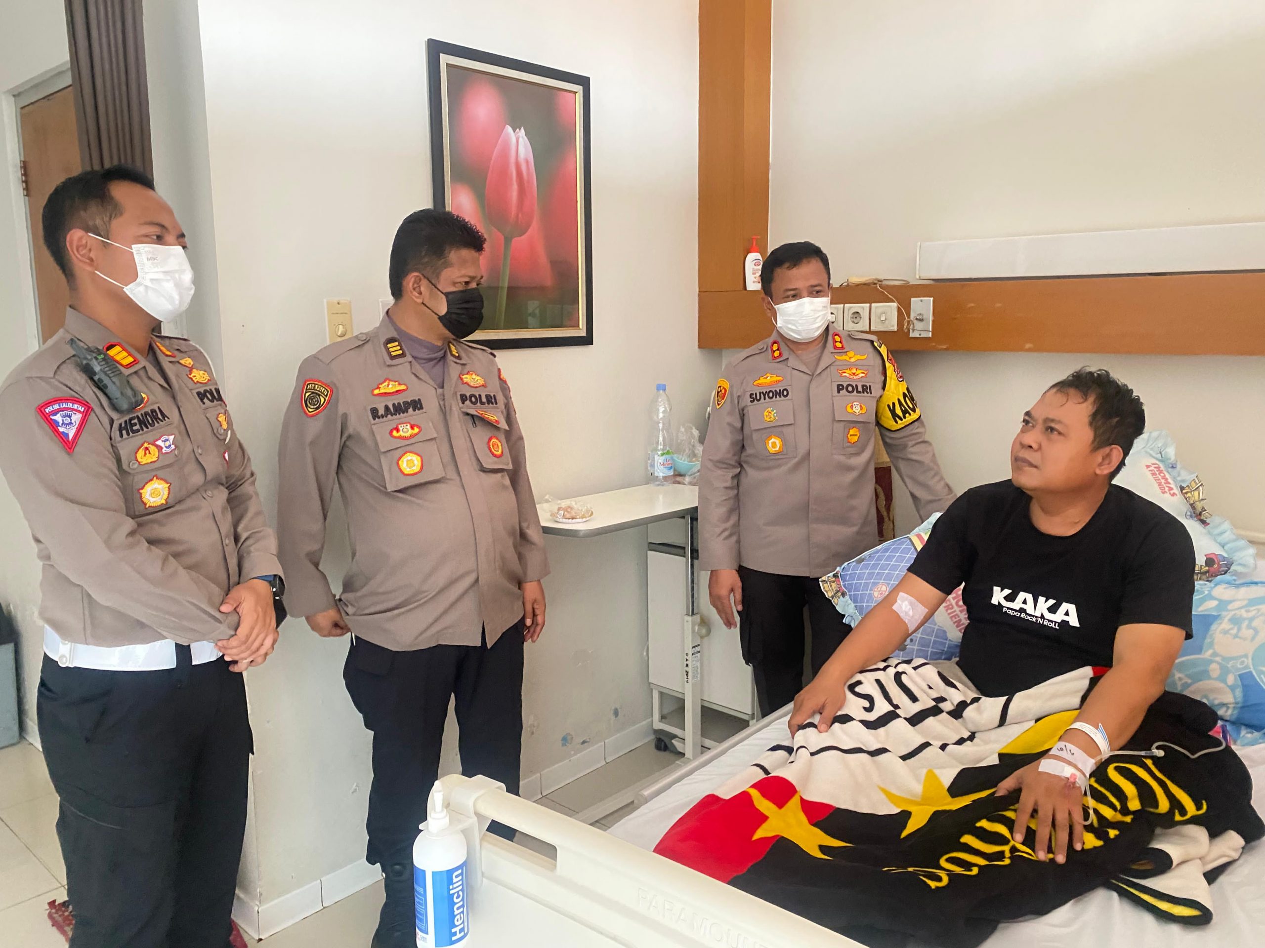 “Ya hari ini, kami membesuk personil dan keluarga personil yang sedang di rawat karena sakit,” ujar Suyono