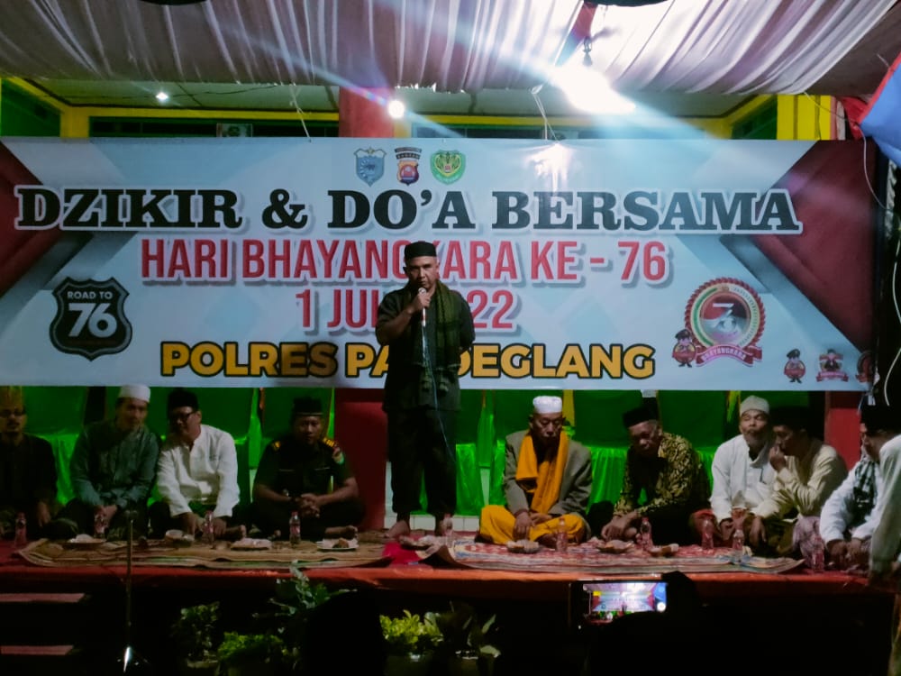 Baraknews Polsek banjar Polres Pandeglang – Kabagops Polres Pandeglang Kompol Yogie Roozandi menghadiri kegiatan zikir, tausiyah dan doa bersama yang berlangsung di Halaman Kantor Kecamatan Banjar, Kamis malam (16/06/2022). Kegiatan tersebut dilaksanakan dalam rangka memperingati HUT Bhayangkara ke-76.