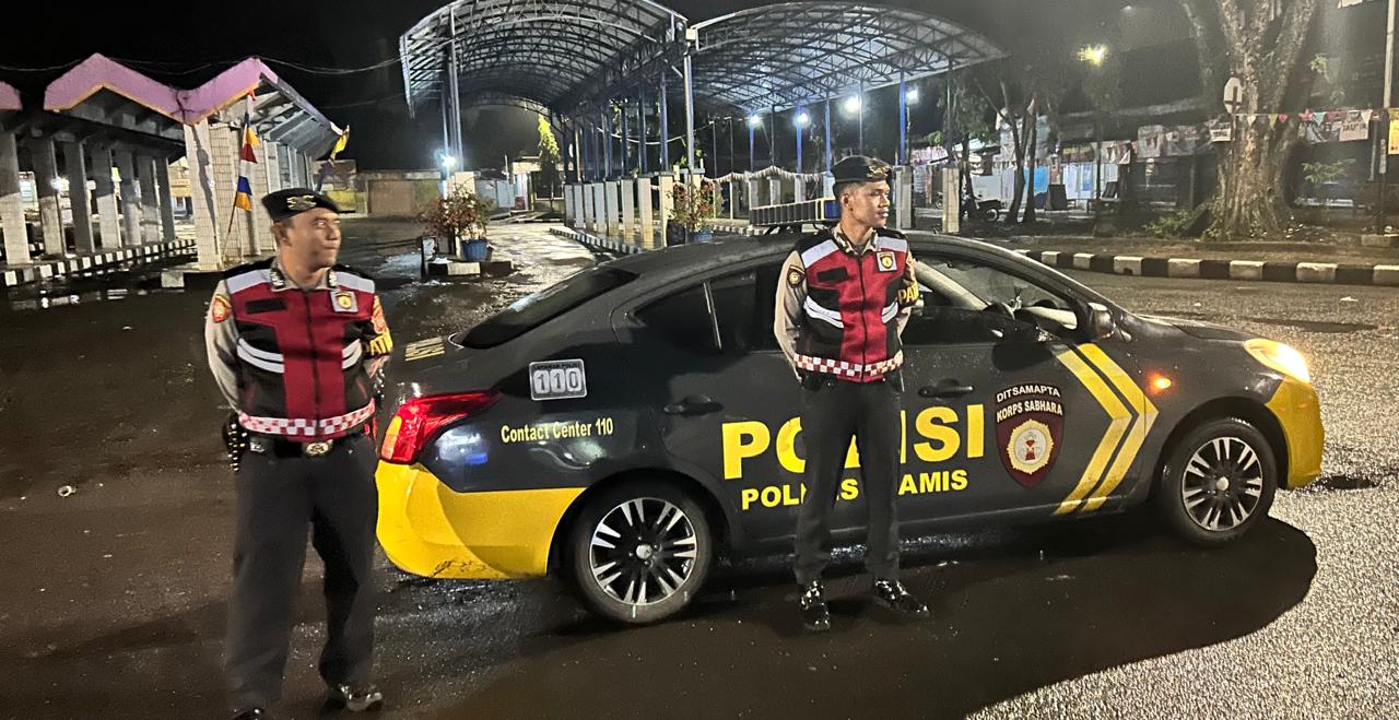 CIAMIS ~ Unit Patroli Sat Samapta Polres Ciamis Polda Jabar melaksanakan Patroli Biru di wilayah rawan tindak kriminalitas dan balapan liar di Kabupaten Ciamis. Patroli ini dilaksanakan di kawasan Terminal Ciamis, Kabupaten Ciamis, Jawa Barat, Kamis (16/10/2025), dini hari.
