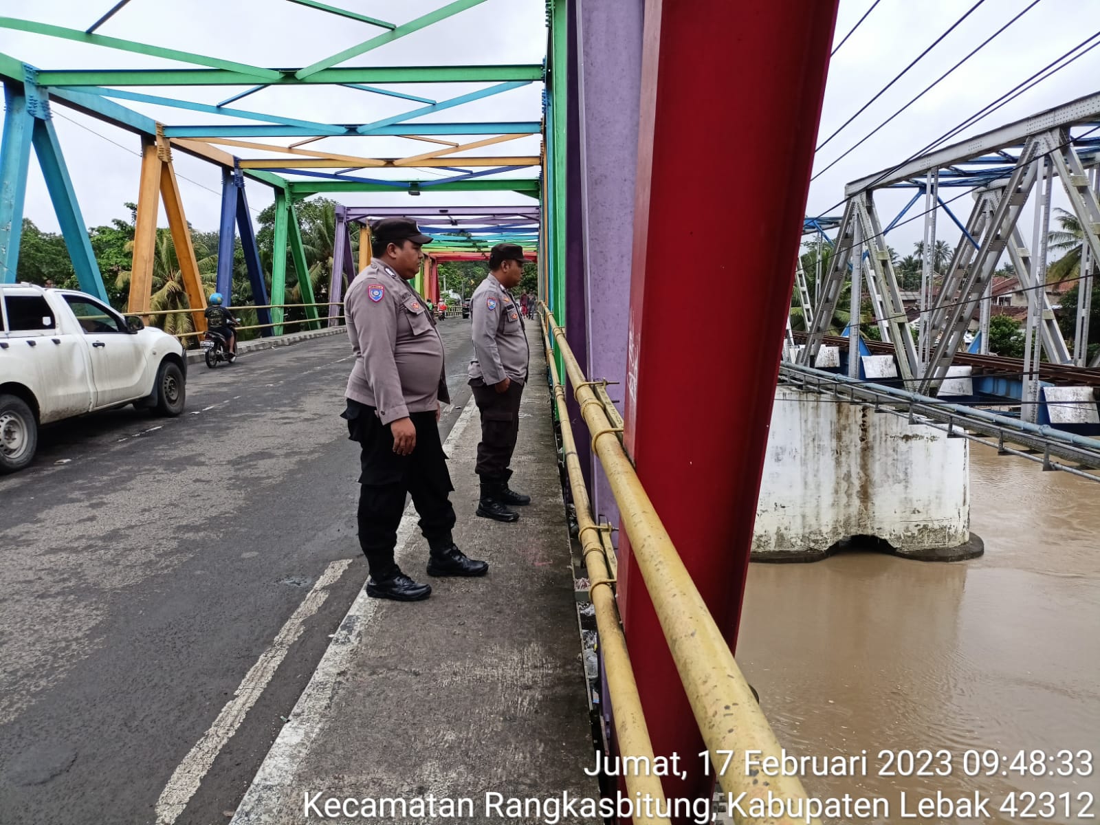 Dalam hal ini Kapolsek Rangkasbitung AKP Pipih Iwan Hermansyah.SH, perintahkan anggotanya untuk selalu intens melaksanakan pengecekan debit air di sungai Ciujung jembatan II Rangkasbitung dan Ciberang jembatan Keong Kecamatan Kalanganyar.