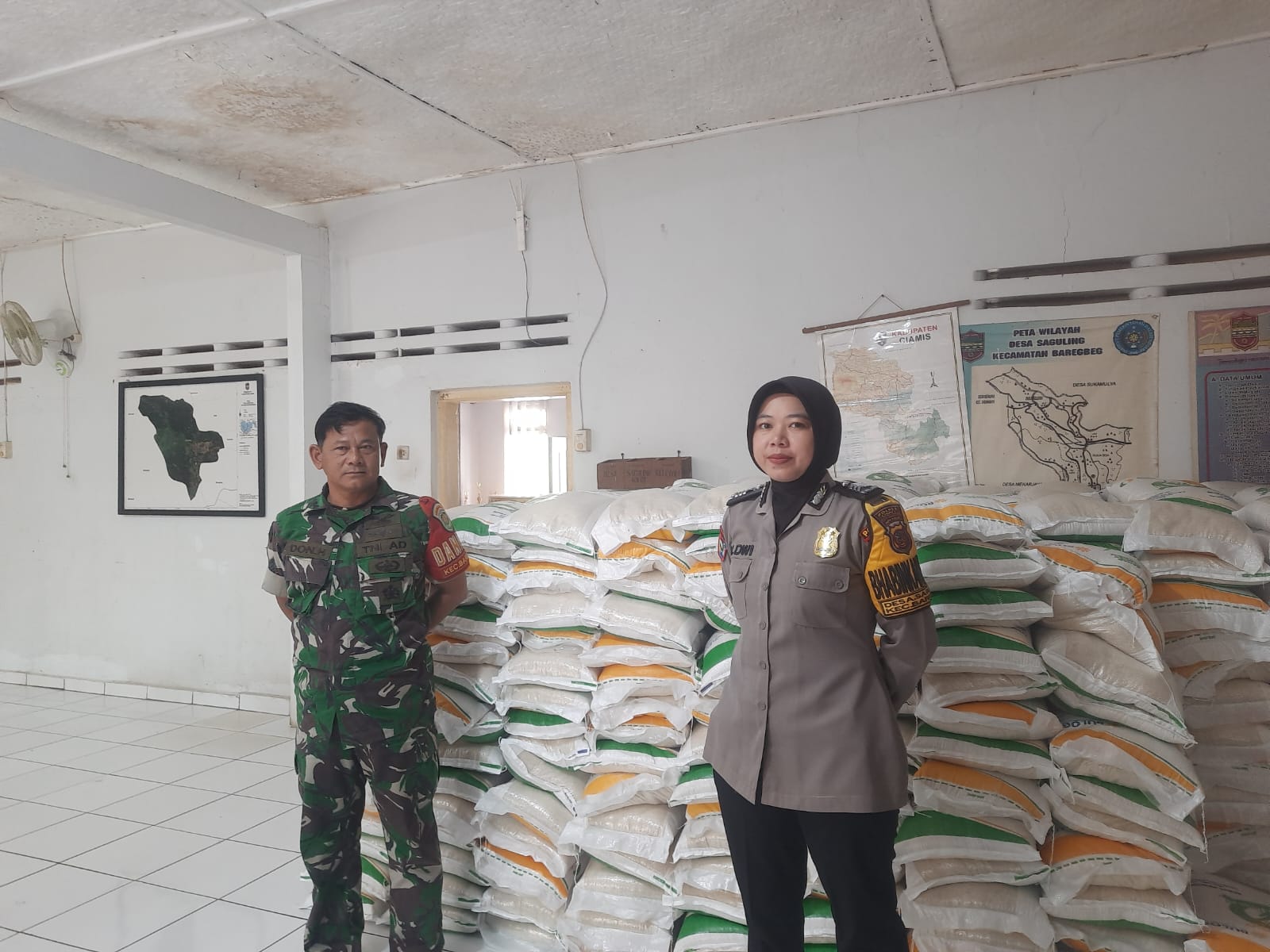 Polres Ciamis Polda Jabar,- Polsek Ciamis Polres Ciamis Polda Jabar melaksanakan monitoring pendistribusian bansos berupa beras dari Badan Ketahanan Pangan Nasional yang bertempat di Gor Desa Saguling, Kec. Baregbeg, Kab. Ciamis, Jawa Barat, Rabu (21/2/2024).