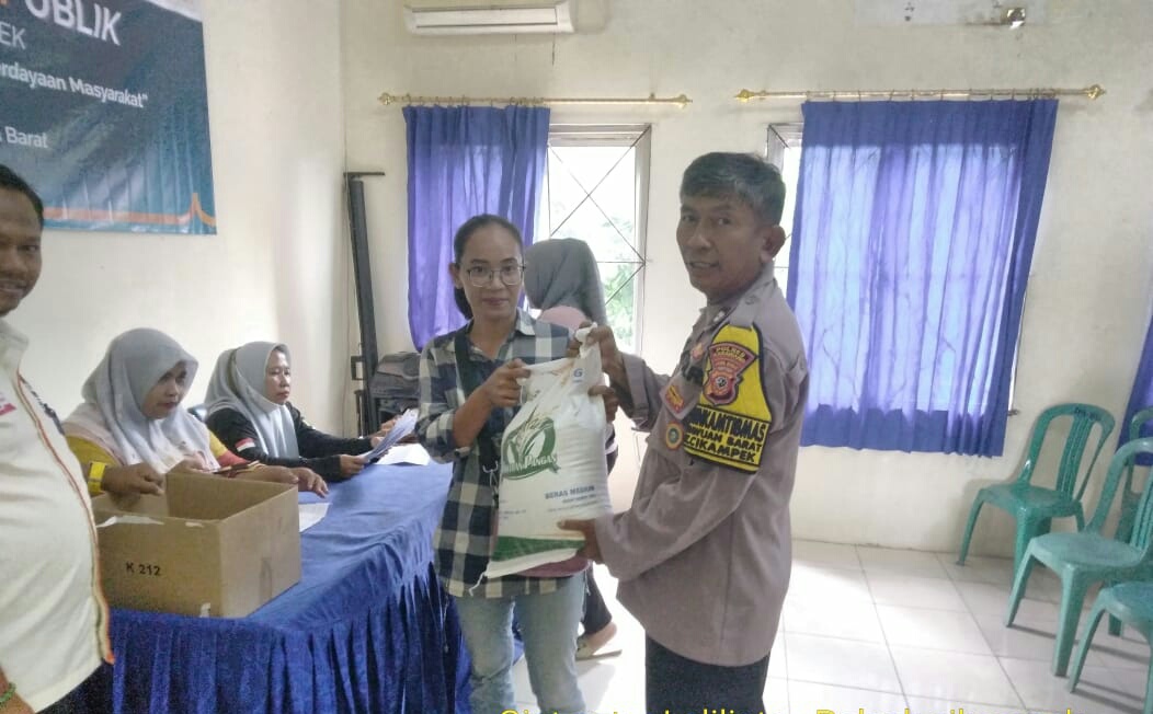 baraknews karawang- ,Bhabinkamtibmas Desa Dawuan Barat melaksanakan Monitoring Penyaluran Bantuan Pangan Beras Bulog Tahun 2023 kepada Warga Desa Dawuan Barat sebanyak 687 KPM ( Keluarga Penerima Manfaat ).