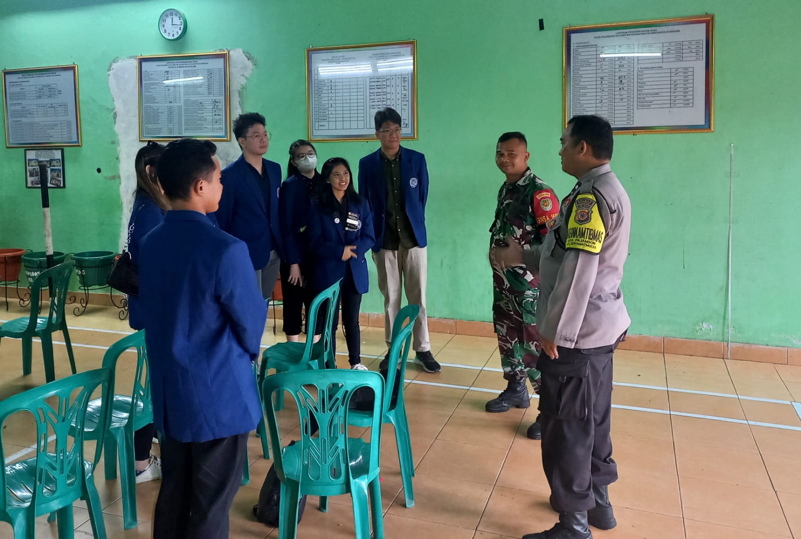 Kapolsek Kramatmulya melalui anggotanya Aiptu Yanto S, bersama Babinsa melaksanakan kegiatan sambang kepada warga desa pajambon dan bertemu dengan para mahasiswa/wi yang sedang melaksanakan KKN di Desa Pajambon berjumlah 24 orang mahasiswa/wi dari Universitas Prasetia Mulia Tanggerang dengan ketua kelompok dari mahasiswa bernama sodara Brayen.