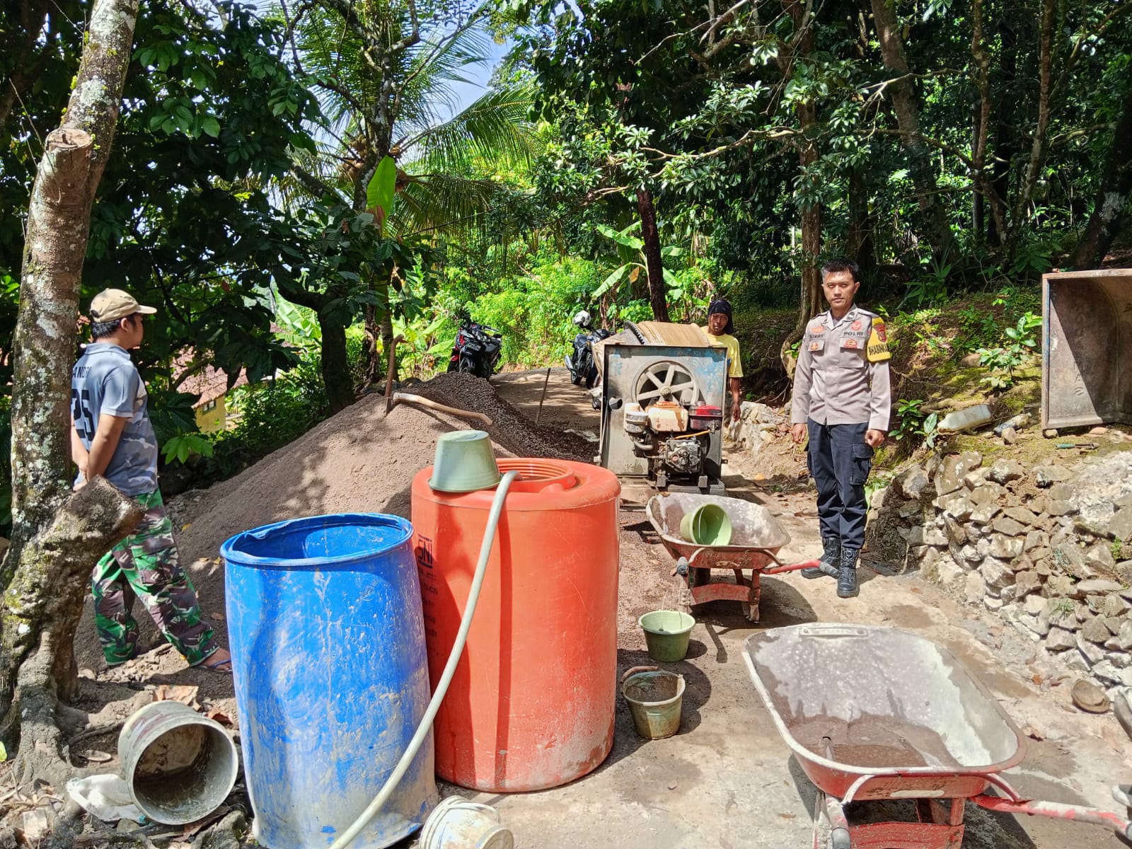 Kehadiran Bhabinkamtibmas di tengah kegiatan pembangunan ini bertujuan untuk memastikan proses pengerjaan berjalan sesuai dengan rencana, serta menjaga situasi keamanan dan ketertiban masyarakat di sekitar lokasi proyek.