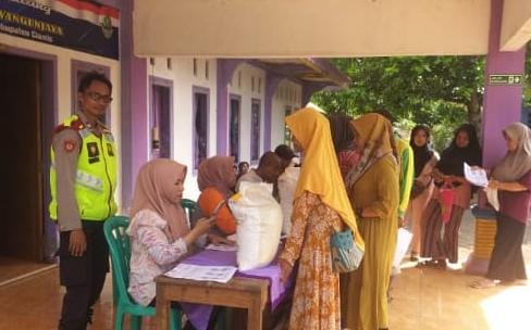 Polres Ciamis Polda Jabar,- Polsek Cisaga Polres Ciamis Polda Jabar melaksanakan giat monitoring penyaluran Penyaluran Bantuan Pangan Cadangan Beras Pemerintah (CBP) Tahap III Tahun 2024 dari Pemerintah RI Berupa Beras kepada Warga masyarakat Desa Wangunjaya, Kec. Cisaga, Kab. Ciamis, Jawa Barat, Rabu (27/3/2024).