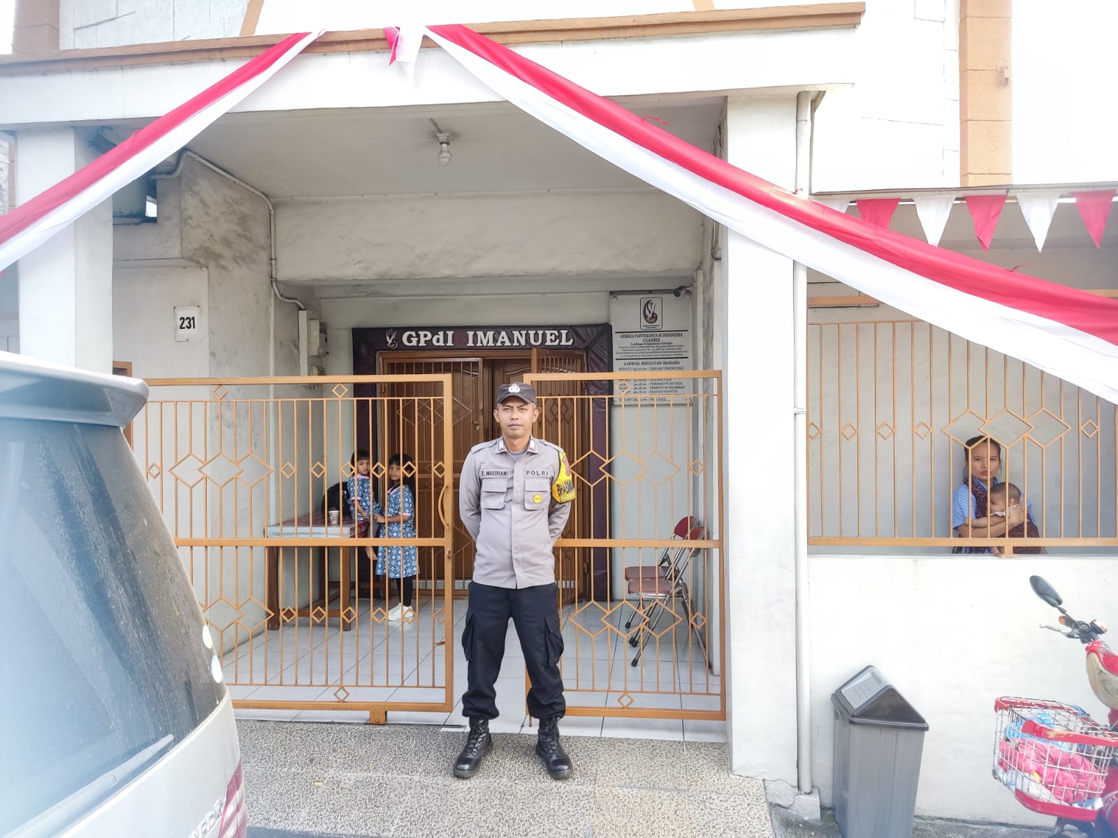 Personel Polri ini hadir untuk menjaga dan menjamin keamanan kegiatan ibadah Minggu Umat Kristiani. Pengamanan dilakukan di area sekitar Gereja agar memberikan rasa nyaman dan aman masyarakat, baik jemaat Gereja maupun warga disekitarnya.