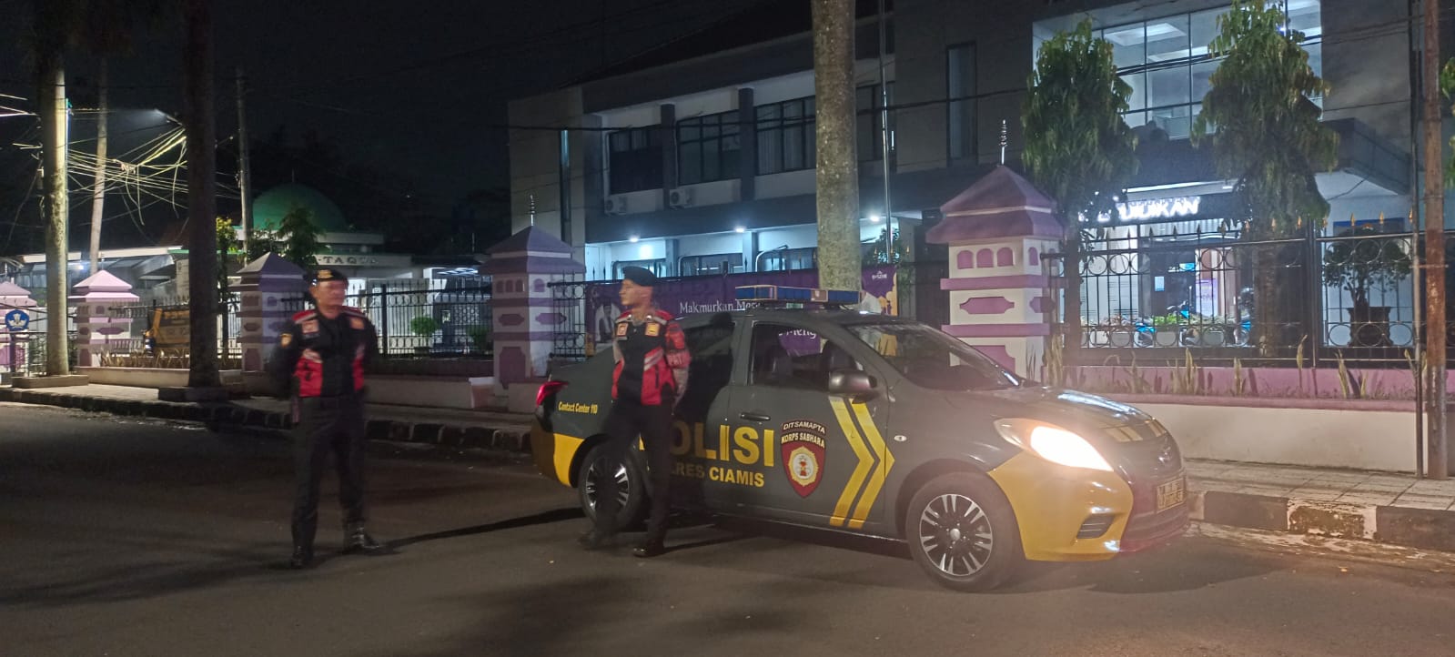 CIAMIS ~ Personel Satuan Samapta Polres Ciamis Polda Jabar melaksanakan Patroli objek vital dalam rangka cipta kondisi antisipasi gangguan kamtibmas. Patroli tersebut dilaksanakan secara mobile oleh unit patroli Sat Samapta Polres Ciamis Polda Jabar, dan menyambangi Kantor Dinas Pendidikan Kabupaten Ciamis, Jawa Barat, Rabu, 22 Januari 2026, malam.