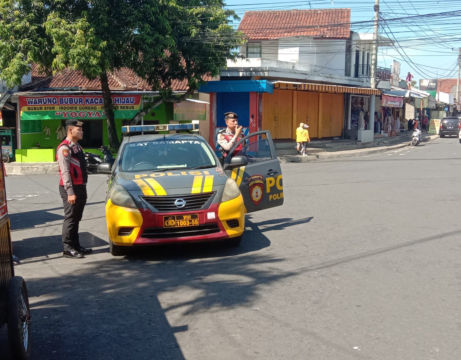 CIAMIS ~ Personel Satuan Samapta Polres Ciamis Polda Jabar melaksanakan patroli dialogis dalam rangka cipta kondisi aksi tindak kriminalitas di tempat keramaian masyarakat. Patroli kali ini dilaksanakan di kawasan Simpang Empat Jalan Perintis Kemerdekaan, Kecamatan Ciamis, Kabupaten Ciamis, Jawa Barat, Sabtu (12/7/2025).