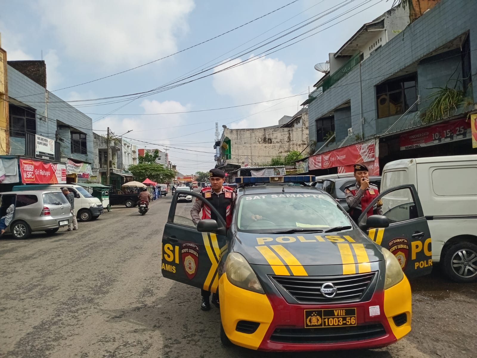 CIAMIS ~ Personel Satuan Samapta Polres Ciamis Polda Jabar melaksanakan patroli jalan kaki dalam rangka cipta kondisi aksi tindak kriminalitas di tempat keramaian masyarakat. Patroli jalan kaki ini dilaksanakan di kawasan Pasar Sindangkasih, Kecamatan Sindangkasih, Kabupaten Ciamis, Jawa Barat, Minggu (6/7/2025).