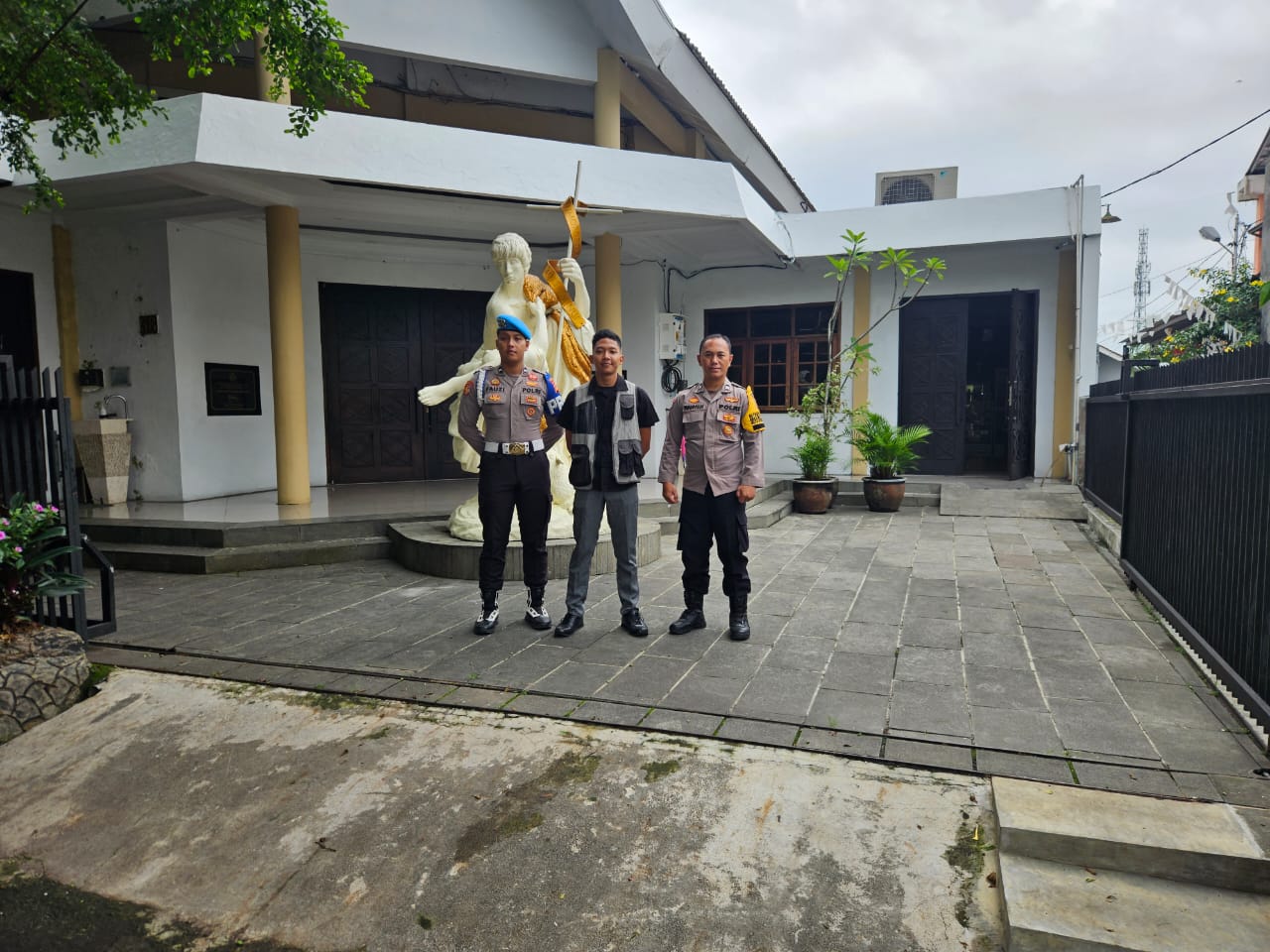CIAMIS ~ Jajaran personel Polres Ciamis Polda Jawa Barat melaksanakan pengamanan kegiatan ibadah umat kristiani di wilayah Kabupaten Ciamis. Pengamanan ini dilaksanakan di sekitar Gereja Katolik Santo Yohanes Pembabtis Ciamis, Jl. Pemuda No.56-58, Ciamis, Kecamatan Ciamis, Kabupaten Ciamis, Jawa Barat, Minggu (26/10/2025)