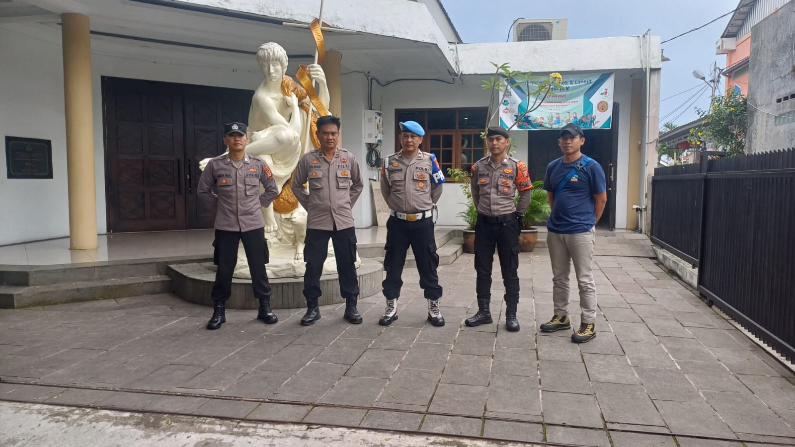 CIAMIS ~ Jajaran personel Polres Ciamis Polda Jawa Barat melaksanakan pengamanan kegiatan ibadah umat kristiani di wilayah Kabupaten Ciamis. Pengamanan ini dilaksanakan di sekitar Gereja Katolik Santo Yohanes Pembabtis Ciamis, Jl. Pemuda No.56-58, Ciamis, Kecamatan Ciamis, Kabupaten Ciamis, Jawa Barat, Minggu (27/7/2025)