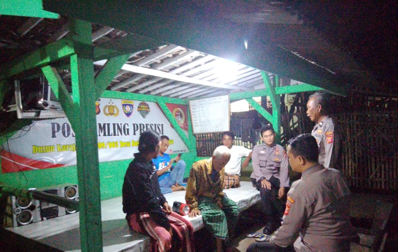 Kedatangan Kanit Sabhara Polsek Tirtajaya bersama Anggota di Sambut hangat oleh Masyarakat yang sedang melaksanakan Giat Ronda Malam (Siskamling), Kedekatan Polri kepada Masyarakat semakin lekat dan dirasakan oleh masyarakat Khusunya Masyarakat Desa Bolang yang setiap Malam melaksakan giat Ronda Malam (Pos Kamling) selalu di sertai Kehadiran dari Anggota Polsek Tirtajaya, yang mana memberikan Semangat dan Motivasi kala melaksanakan tugasnya. Pada kesempatan tersebut Aiptu Nano Sugiono tidak pernah bosannya memberikan Himbauan kepada Masyarakat tentang Kamtibmas dan meminta agar selalu koordinasi dengan pihak kepolisian ketika ada tindakan Kriminalitas di Lingkungan Masyarakat.