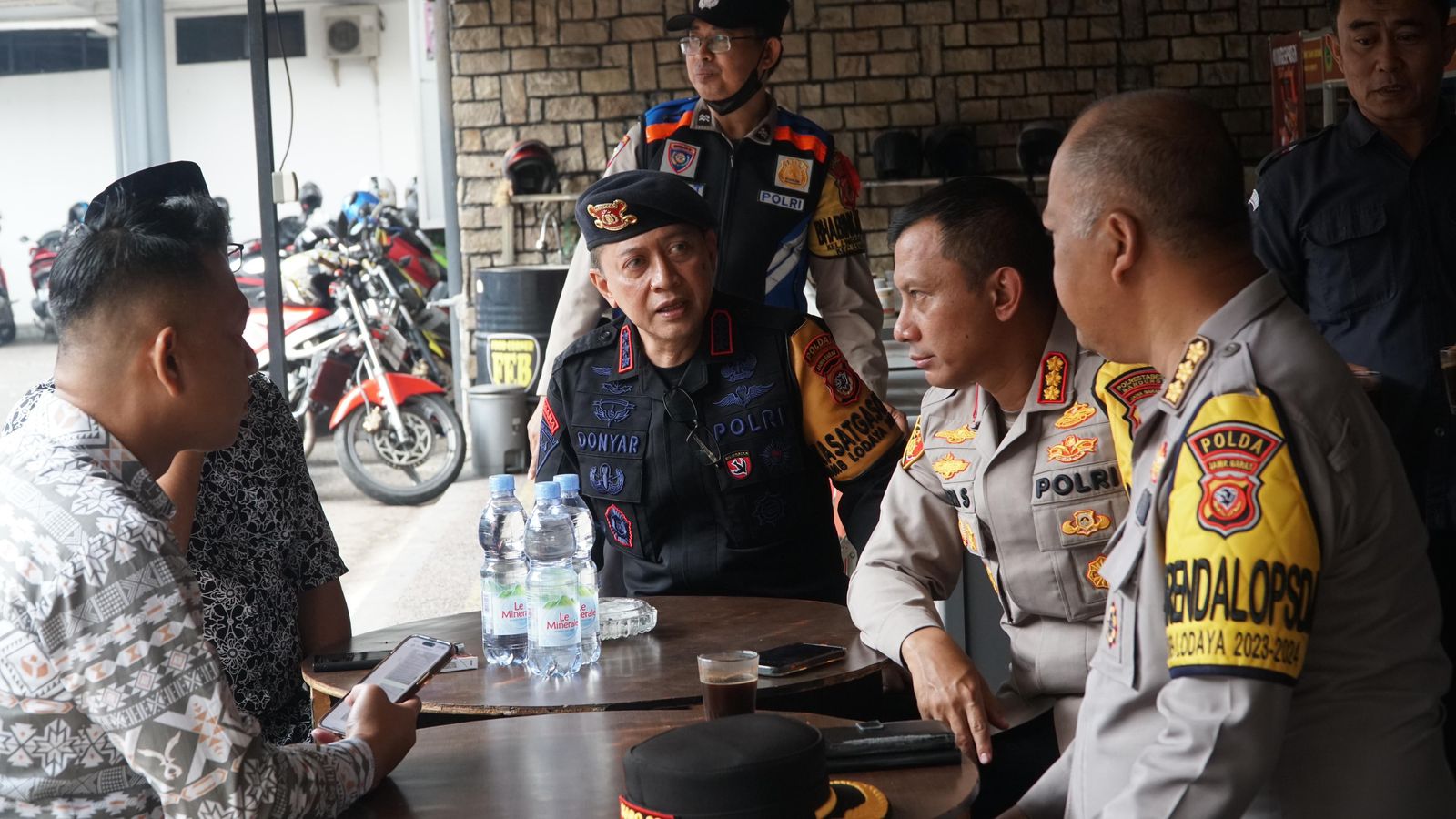 Jabar–Komandan Satuan Brimob Polda Jabar Kombes Pol. Donyar Kusumadji, S.I.K., pimpin langsung pasukan Brimob Polda Jabar dalam pengamanan aksi unjuk rasa di depan kantor Bawaslu Jabar, Selasa (27/2/2024)