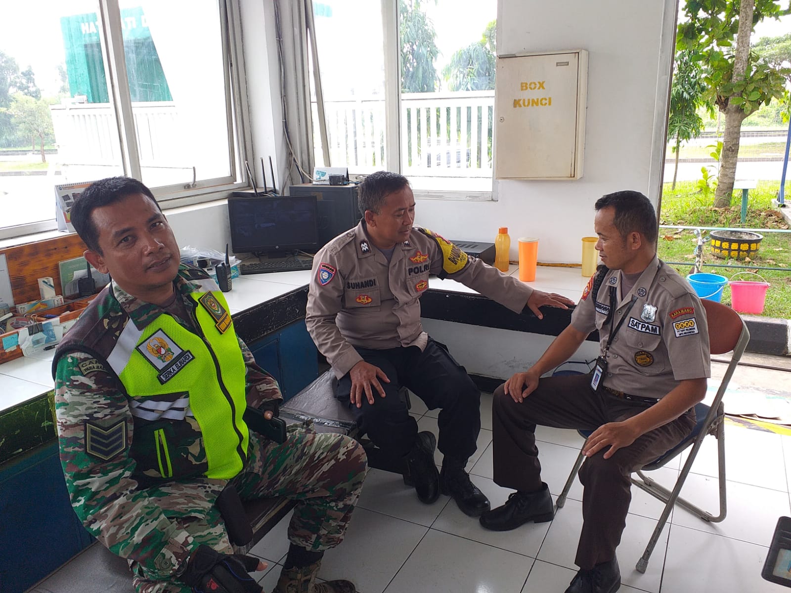 Karawang – Bhabinkamtibmas Polsek Ciampel Polres Karawang Aiptu Suhandi bersama Babinsa Serka Elinardi sambangi security PT. Topy Panglida di Kawasan Surya Cipta, Kecamatan Ciampel, Kabupaten Karawang, Senin (10/7/2023).