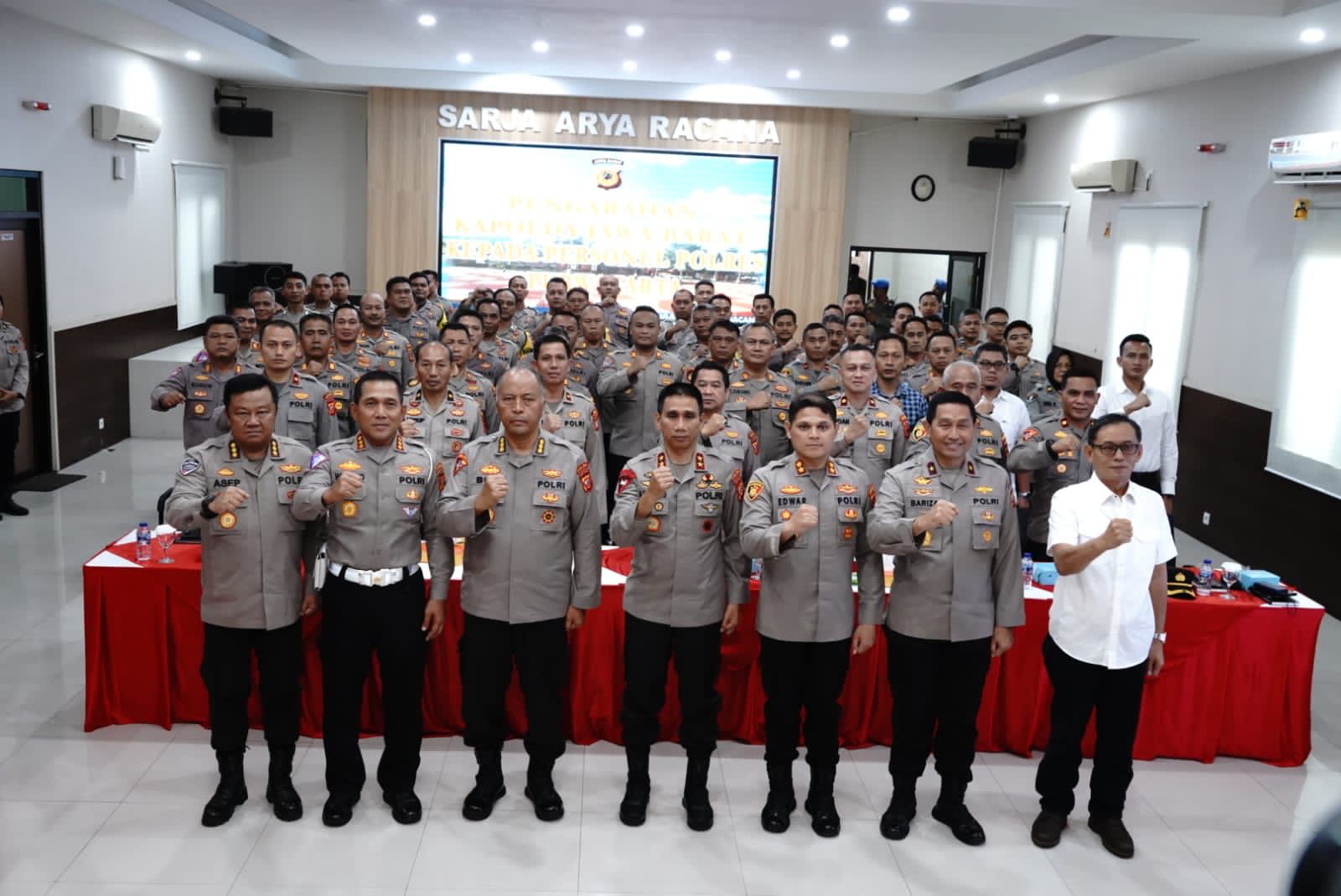 Setelah soliturahmi dengan Forkopimda dan Tokoh masyarakat Purwakarta, Kapolda Jabar memberikan arahan kepada anggota Polres Purwakarta di Aula Sarja Arya Rancana.