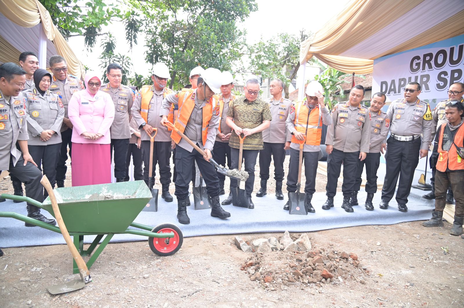 Jabar– Kapolda Jawa Barat, Irjen Pol. Dr. Akhmad Wiyagus, S.I.K., M.Si., M.M., bersama Wakapolda Jabar, Brigjen Pol. Drs. Kasihan Rahmadi, S.H., M.H., beserta Pejabat Utama (PJU) Polda Jabar, melaksanakan prosesi Groundbreaking sekaligus peletakan batu pertama pembangunan Dapur SPPG (Satuan Pelayanan Pemenuhan Gizi) Polda Jabar. Kegiatan ini berlangsung di area Asrama Polisi Sukamiskin Polda Jabar Blok A Jl. Saharjo Kec. Arcamanik Kota Bandung, Senin (10/2/2025).