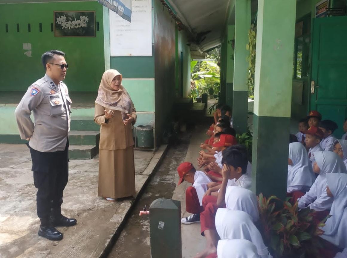 Hadir di Sekolah, Polsek Cipaku Tanamkan Budaya Disiplin Berlalu Lintas ke Siswa SDN 1 Pusakasari