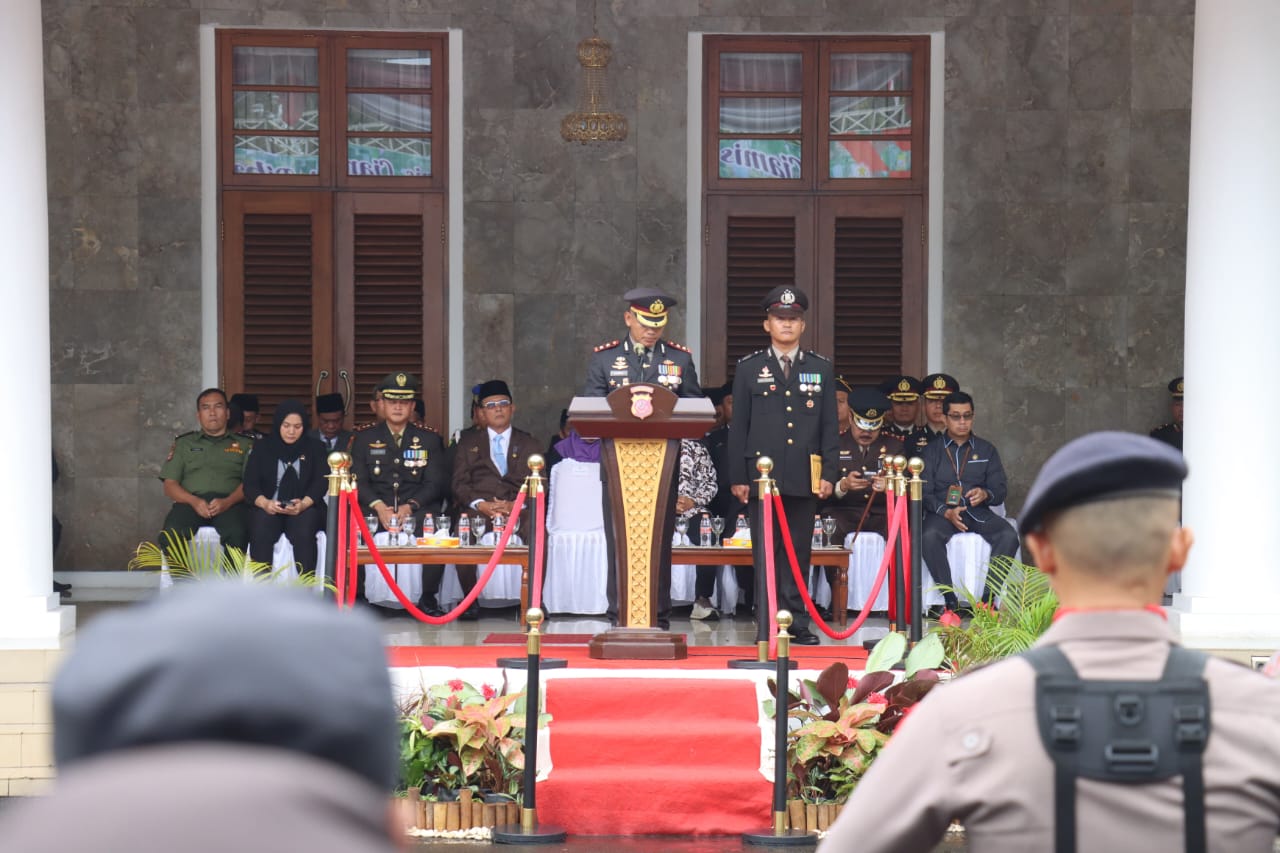 Kapolres Ciamis Polda Jabar AKBP Akmal, SH., S.I.K., M.H., menyampaikan, pada hari yang bersejarah bagi Polri Tahun 2025, tentunya menjadi tonggak sejarah dimulainya era kepemimpinan dan perjalanan baru bagi bangsa Indonesia. Pasca terlaksananya pesta demokrasi tahun 2024 yang berjalan lancar dan kondusif dengan terpilihnya H. Prabowo Subianto dan Gibran Rakabuming Raka sebagai Presiden Dan Wakil Presiden Republik Indonesia Periode Tahun 2024 – 2029.