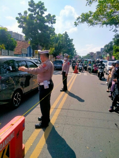 Personil Pospam melaksanakan Gatur dengan titik sepanjang jalur A.H.Nasution pertigaan dan jalur Protokol terusan Jakarta.yang dipimpin langsung oleh Panit Lantas Ipda Iwan Kuswandi.