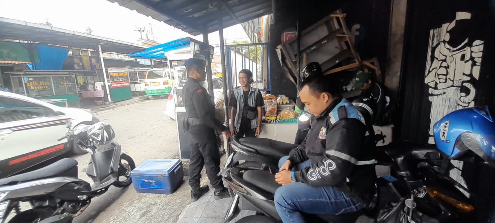 Personel dari Kompi 3 Batalyon B Pelopor sambangi para pengemudi ojek online yang sedang mangkal di wilayah jalan raya Cipanas. Patroli kali ini dilaksanakan oleh Brigadir Septiadi Simanjuntak ini berdialog secara humanis menyampaikan himbauannya untuk selalu berhati-hati saat berada di jalan raya.