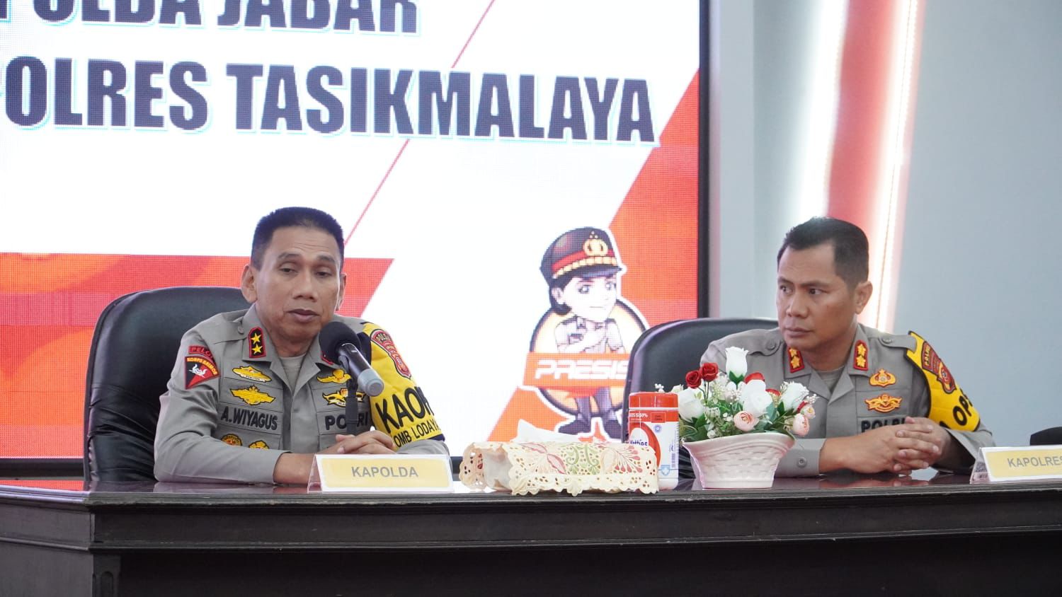Jabar–Kapolda Jawa Barat Irjen Pol. Dr. Akhmad Wiyagus, S.I.K., M.Si., M.M., didampingi Karumkit Polda Jabar Kombes Pol. Dr drg Nelson Situmorang, Sp.B.M.M.,Subsp.T.M.T.M.J(K).,M.H.Kes dan Kabid Humas Polda Jabar Kombes Pol. Jules Abraham Abast S.I.K melaksanakan kunjungan ke Polres Tasikmalaya dalam rangka pelaksanaan OMB tahun 2024 yang dilaksanakan di Gedung GPW Polres Tasikmalaya, Rabu (20/03/2024).