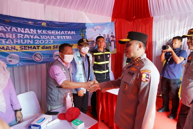 Selain dari pada itu Kabaharkam melakukan pemeriksaan ke Pos Yan Kesehatan dan menyapa petugas yang ada di Rest Area KM.57 dan memberikan arahan agar melaksanakan tugas dengan baik serta menjaga kesehatan.
