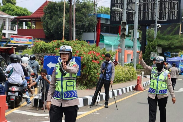 Polisi tampak mengatur lalu lintas di lokasi dan bersiaga memantau potensi kepadatan yang terjadi.