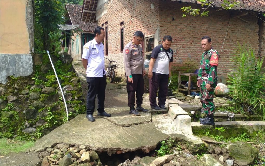 Baraknews Polda Jabar–Kapolres Kuningan Polda Jabar, AKBP Dhany Aryanda, telah mendatangi TKP Bencana alam yang mengakibatkan keretakan di 2 dinding rumah dan amblesnya jalan gang desa dan gorong – gorong saluran air irigasi.